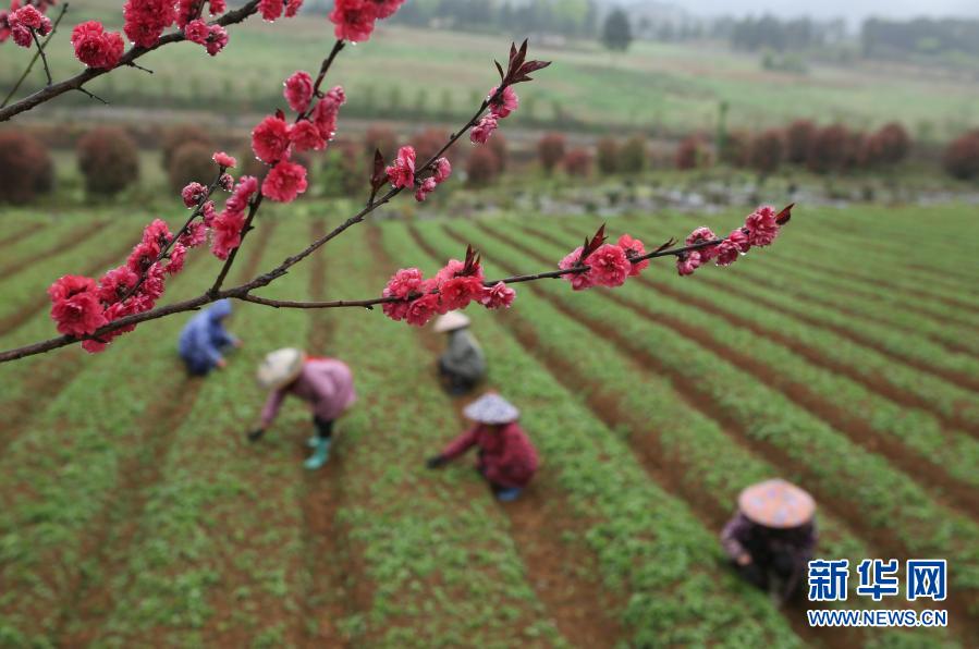 3月20日,村民在貴州省丹寨縣興仁鎮(zhèn)中藥材培植基地除草。