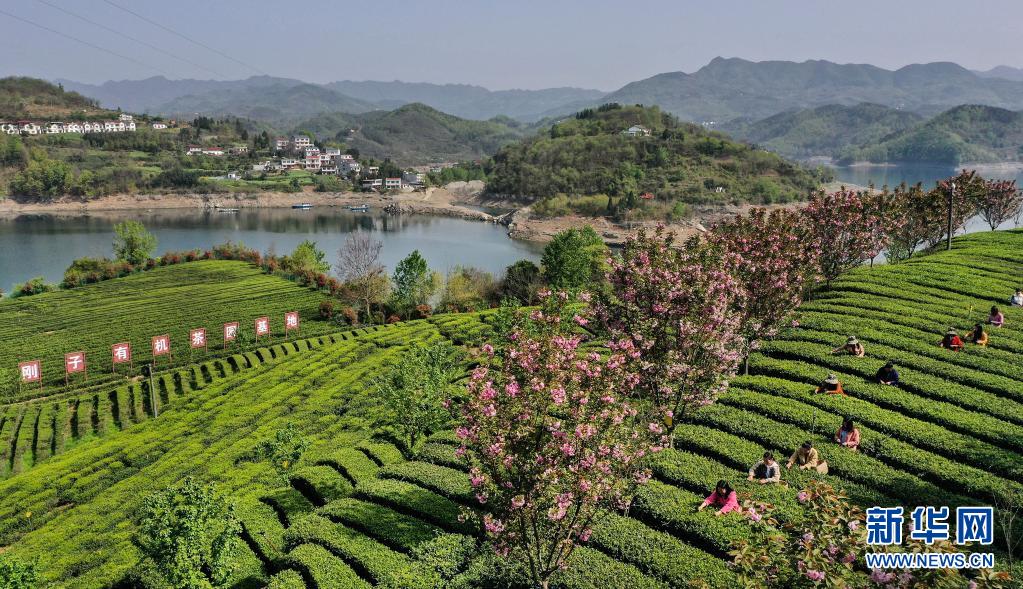3月28日,流水鎮(zhèn)剛子茶葉專(zhuān)業(yè)合作社的社員在采摘新茶(無(wú)人機(jī)照片)。