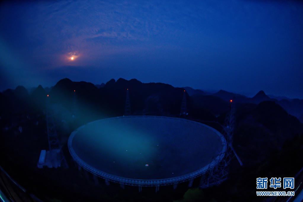 3月28日拍攝的夜幕下的“中國(guó)天眼”全景。