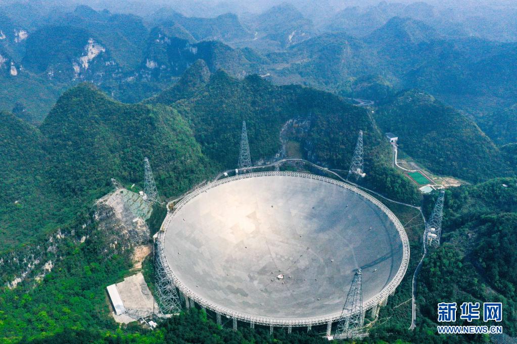 在貴州省平塘縣,被譽(yù)為“中國天眼”的500米口徑球面射電望遠(yuǎn)鏡(FAST)在群山中仰望星空,探求著宇宙奧秘。