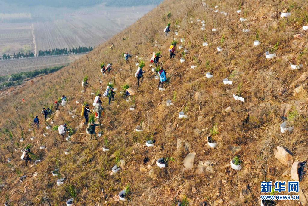 仲春時節(jié),河北省遵化市提前開始今年的荒山造林,造林隊員們忙著運(yùn)送樹苗、栽樹、澆水。遵化市今年計劃完成荒山造林5萬多畝。