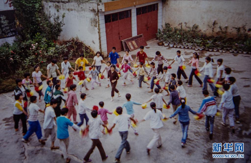 張桂梅與華坪兒童福利院的孩子們?cè)谝黄穑ㄙY料照片)。新華社發(fā)