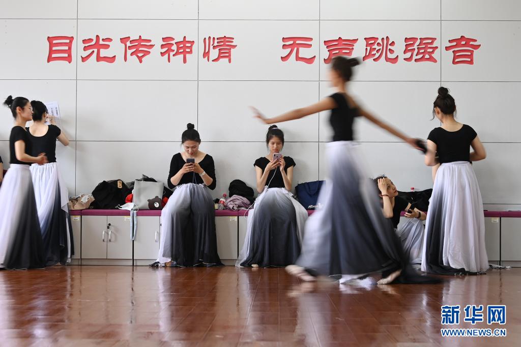天津理工大學聾人工學院的舞蹈隊員們在學院的排練廳里休息(5月8日攝)。新華社記者 李然 攝