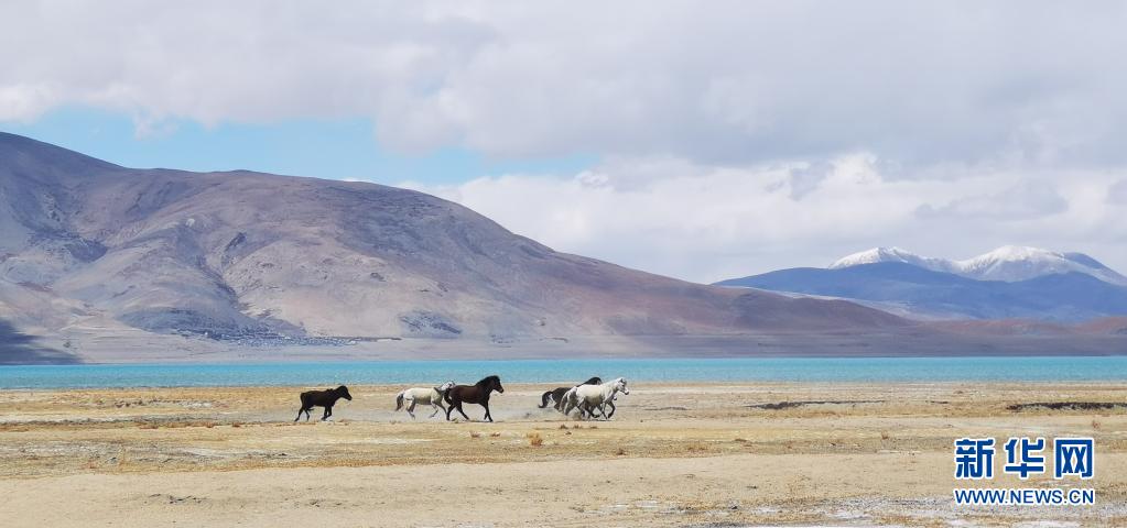 野馬在佩枯錯(cuò)旁奔馳(5月14日攝,手機(jī)照片)。