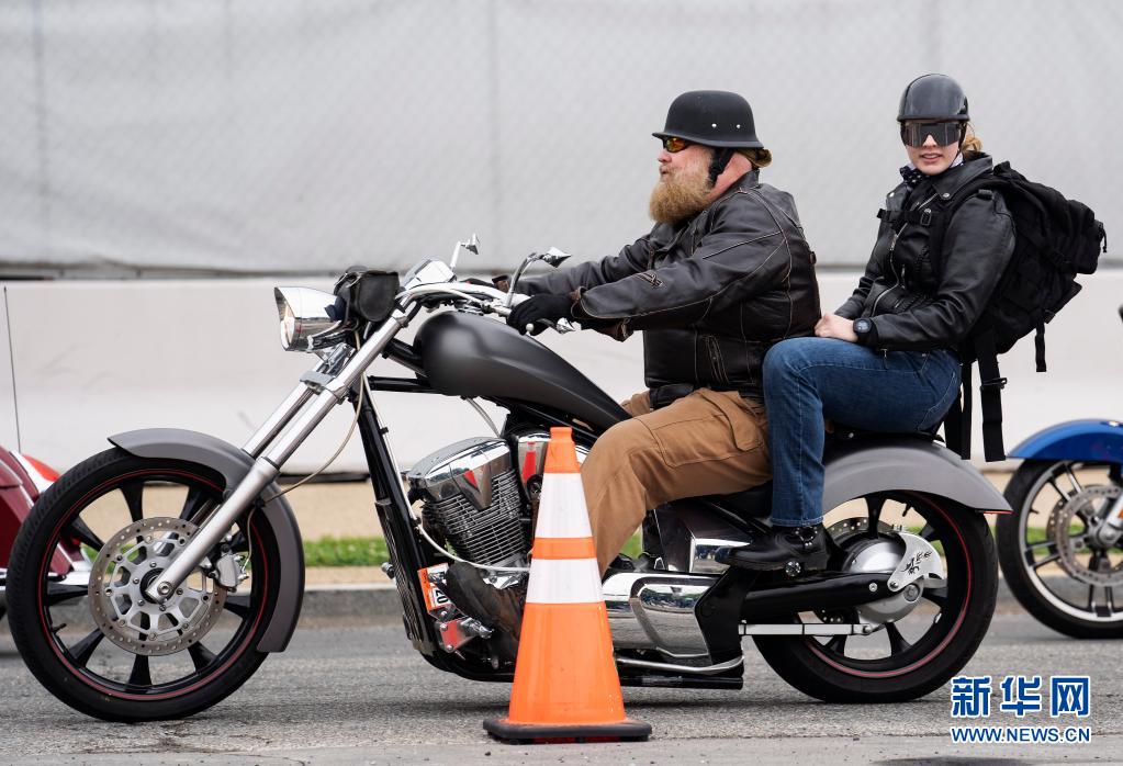 5月30日,在美國(guó)首都華盛頓,人們參加“滾雷”摩托車(chē)大游行。
