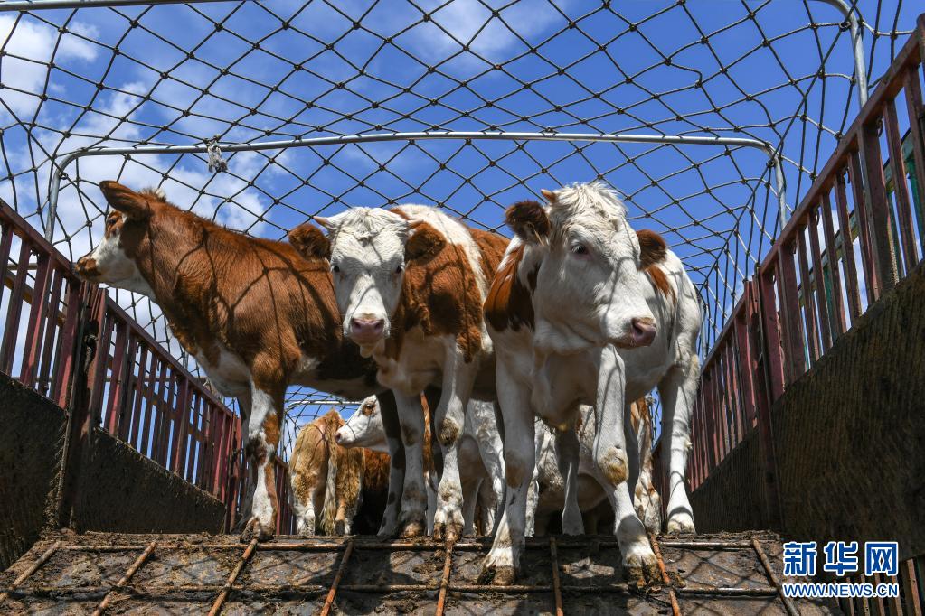 這是6月1日拍攝的開魯牛市物流廣場上已裝車的活牛。