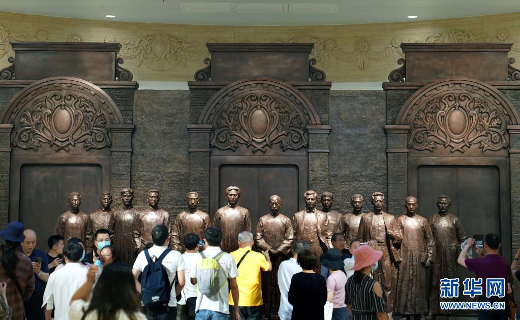 6月6日,觀(guān)眾在中共一大代表群體銅像前參觀(guān)。新華社記者 劉穎 攝