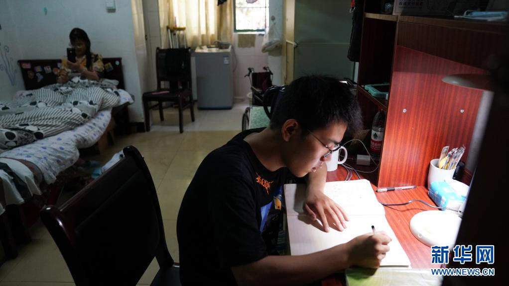 6月1日,趙建軍在宿舍內(nèi)溫習(xí)功課。新華社記者胡晨歡攝