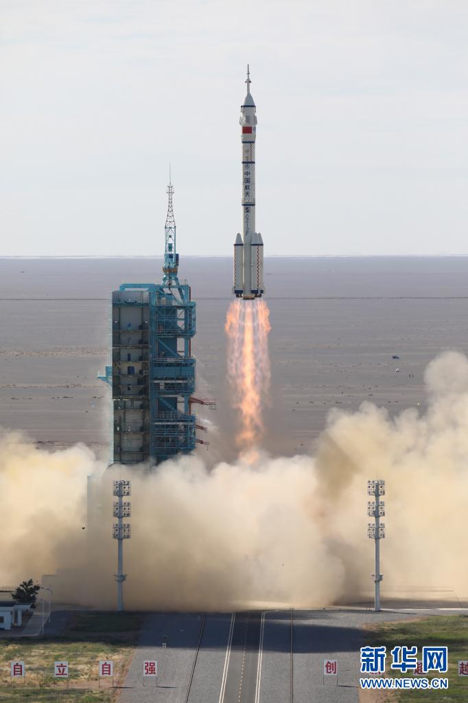6月17日,搭載著神舟十二號載人飛船的長征二號F遙十二運(yùn)載火箭在酒泉衛(wèi)星發(fā)射中心點(diǎn)火升空。新華社記者 李剛 攝