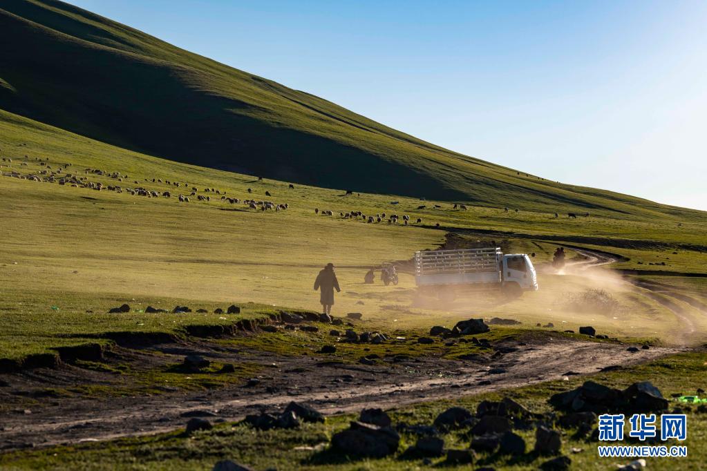 新疆裕民縣巴爾魯克山區(qū)夏牧場景觀(6月15日攝)。如今,牧民放牧條件得以改善,摩托車、汽車更多地出現在牧場上。