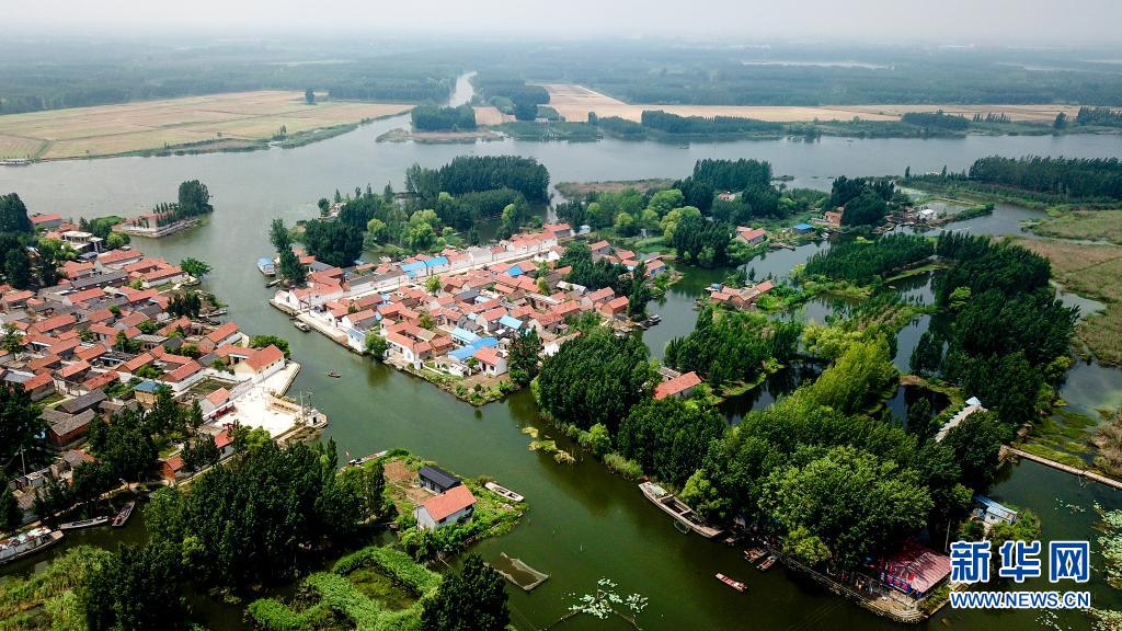 這是郵遞員王少朋服務(wù)的微山縣南陽(yáng)鎮(zhèn)柳溝村和龔莊村(6月20日攝,無(wú)人機(jī)照片)。