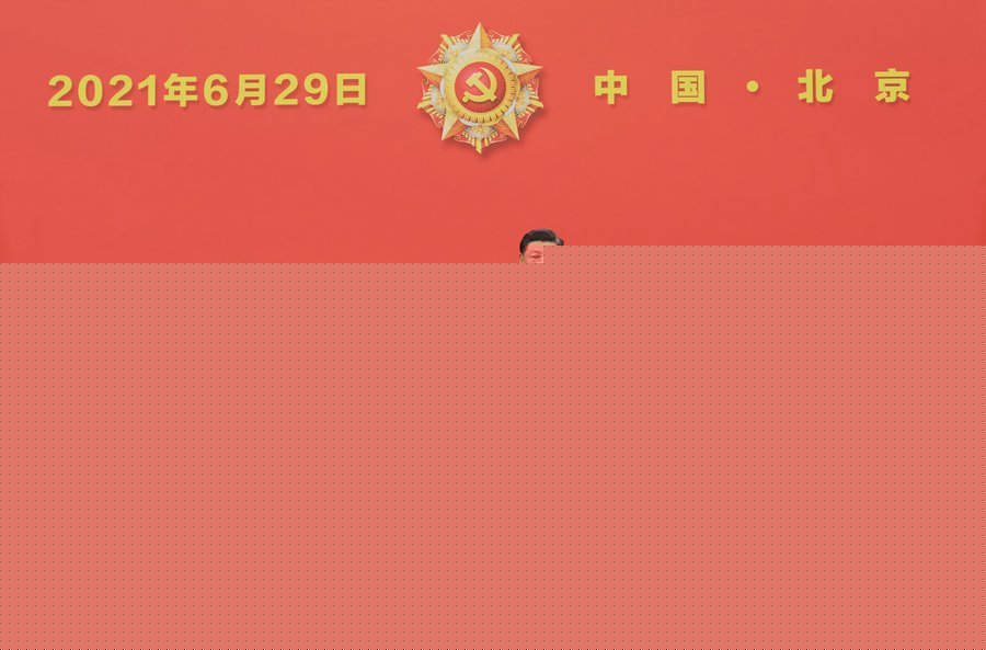 6月29日,慶祝中國共產(chǎn)黨成立100周年“七一勛章”頒授儀式在北京人民大會堂金色大廳隆重舉行。中共中央總書記、國家主席、中央軍委主席習(xí)近平向“七一勛章”獲得者馬毛姐頒授勛章。新華社記者 李學(xué)仁 攝