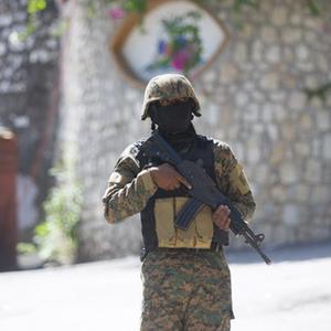 7月7日,在海地太子港,一名士兵在海地總統(tǒng)莫伊茲的住所旁執(zhí)勤。