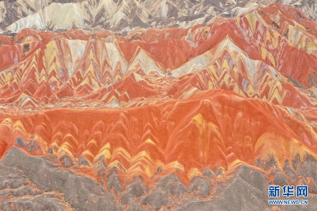夏日時節(jié),位于甘肅省張掖市的張掖世界地質(zhì)公園內(nèi),絢麗的天然色調(diào)依山勢起伏,層理交錯分布,行走其中仿佛置身畫境。