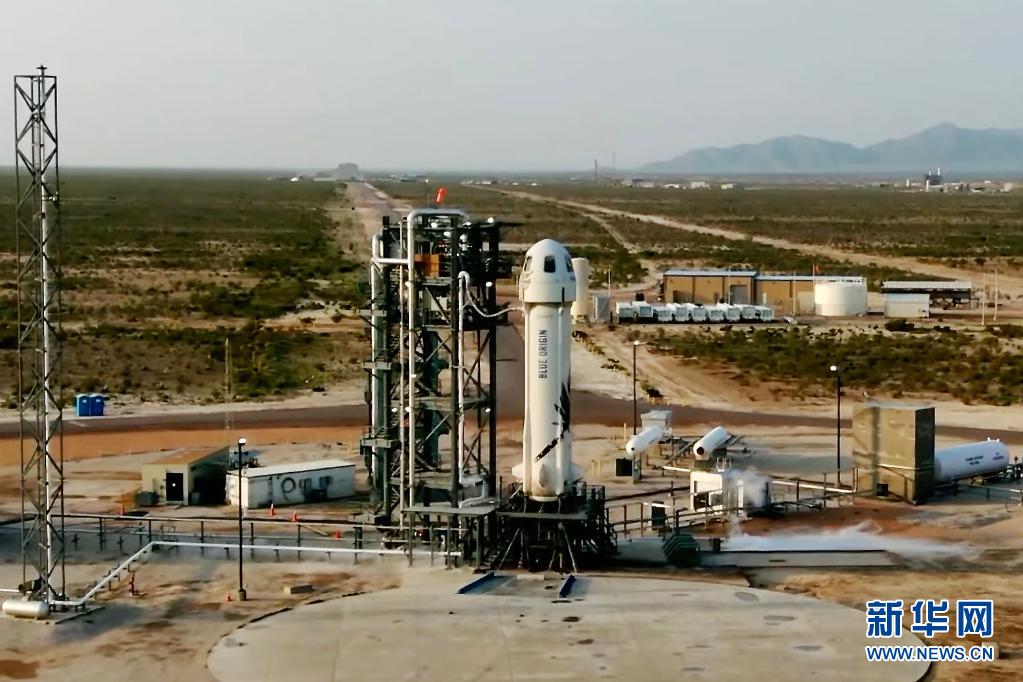 這張美國藍(lán)色起源公司7月20日發(fā)布的視頻截圖顯示“新謝潑德”飛行器在美國得克薩斯州西部一處發(fā)射場準(zhǔn)備升空。
