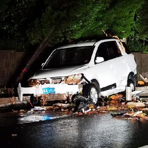 7月21日在310國(guó)道米河鎮(zhèn)段拍攝的一輛因洪水損壞的汽車。