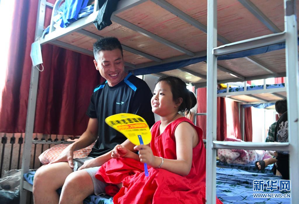 7月25日,轉(zhuǎn)移群眾在河南省新鄉(xiāng)市第二中學(xué)安置點(diǎn)的宿舍內(nèi)休息。