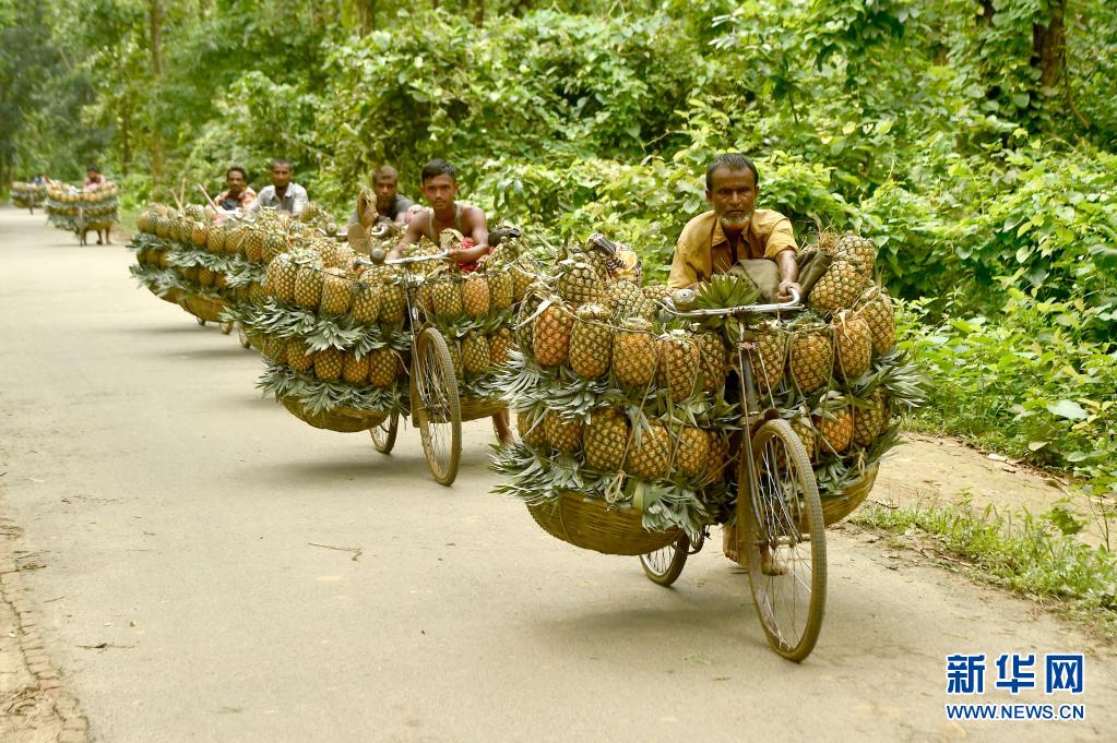 7月25日,農(nóng)民在孟加拉國(guó)坦蓋爾運(yùn)輸收獲的菠蘿。