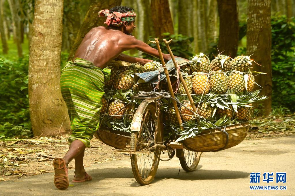 7月25日,農(nóng)民在孟加拉國坦蓋爾運輸收獲的菠蘿。
