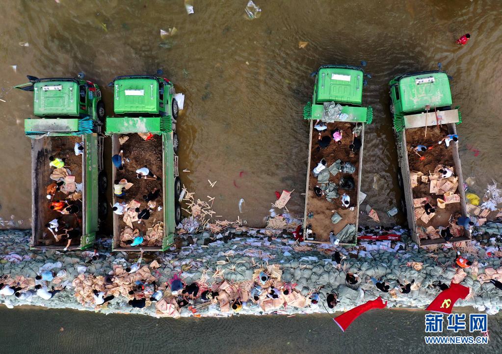 當(dāng)日,在河南省鶴壁市??h傅莊堤上,不少群眾自發(fā)前來和救援人員一起裝沙袋、運沙袋,共筑堤壩。受持續(xù)強降雨影響,??h防汛形勢嚴(yán)峻,傅莊堤主要為??h縣城及26個村莊提供保護(hù)。新華社記者 李安 攝