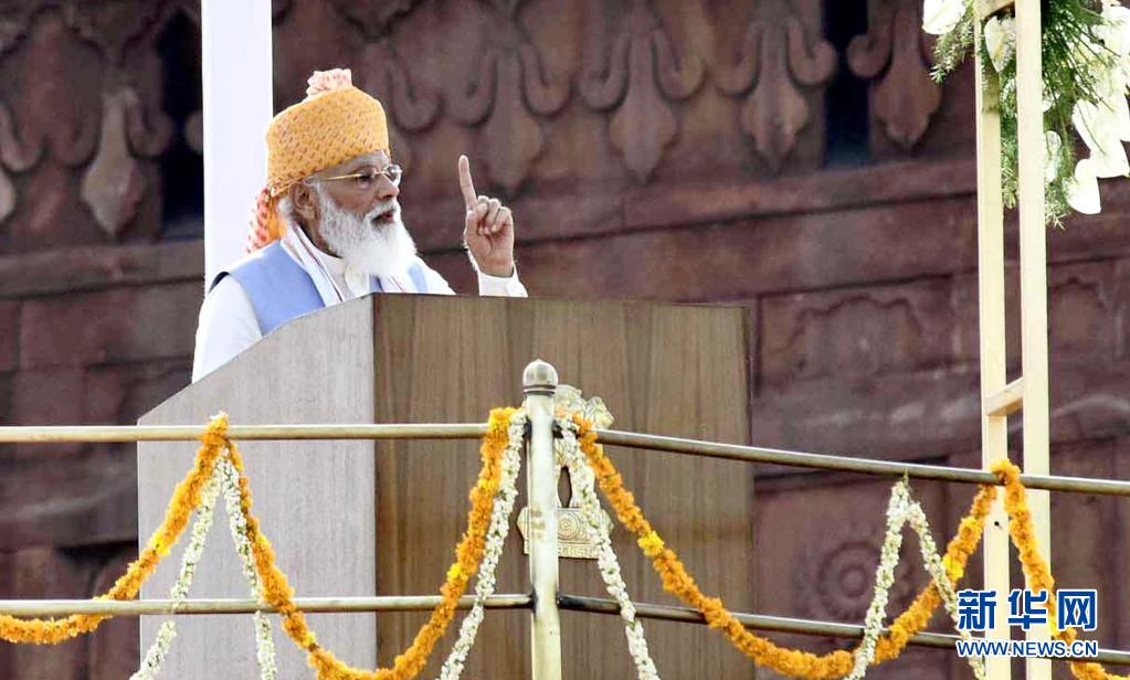 8月15日,印度總理納倫德拉·莫迪在德里舉行的獨(dú)立日慶祝儀式上講話。