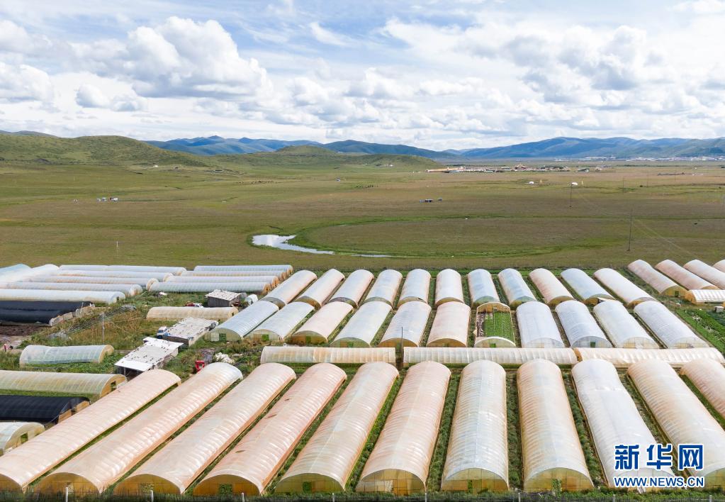 這是四川省阿壩藏族羌族自治州紅原縣邛溪鎮(zhèn)熱坤村的蔬菜大棚(8月13日攝,無(wú)人機(jī)照片)。