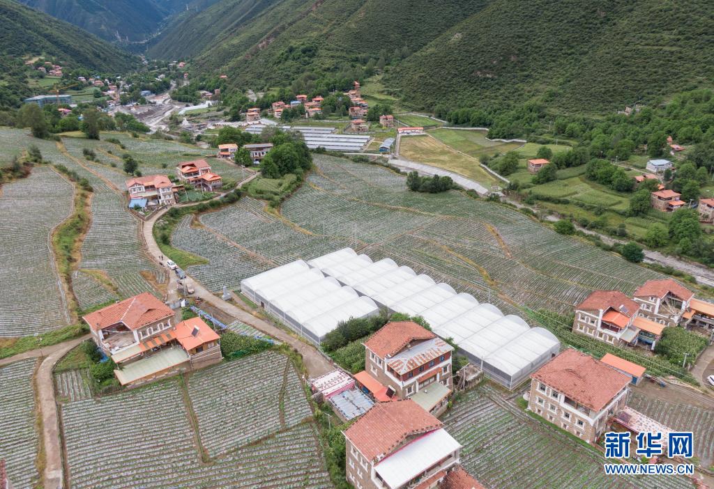 這是四川省阿壩藏族羌族自治州馬爾康市松崗鎮(zhèn)丹波村的蔬菜基地(8月12日攝,無人機照片)。