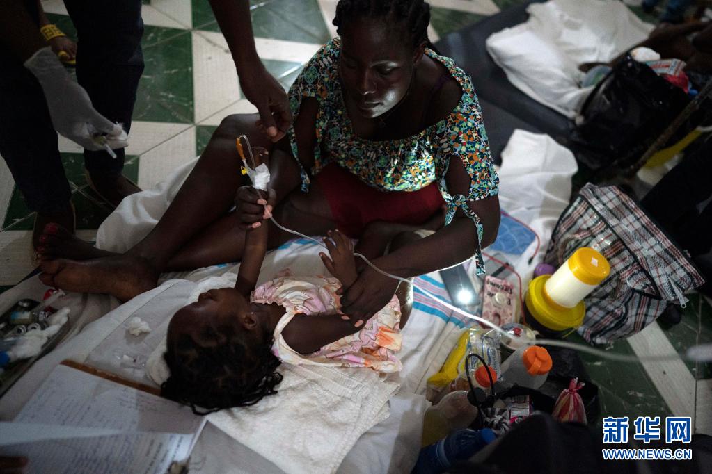 8月18日,在海地震中附近的萊凱的一家醫(yī)院,一名兒童接受治療。