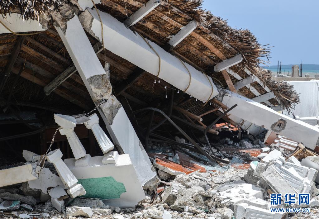 這是8月18日在海地佩斯特爾拍攝的一棟倒塌的房屋。