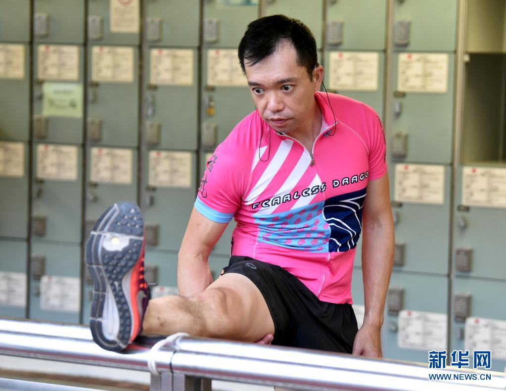 猛龍長跑隊視聽障跑手蔡浩良在訓(xùn)練前熱身(7月29日攝)。新華社記者 盧炳輝 攝