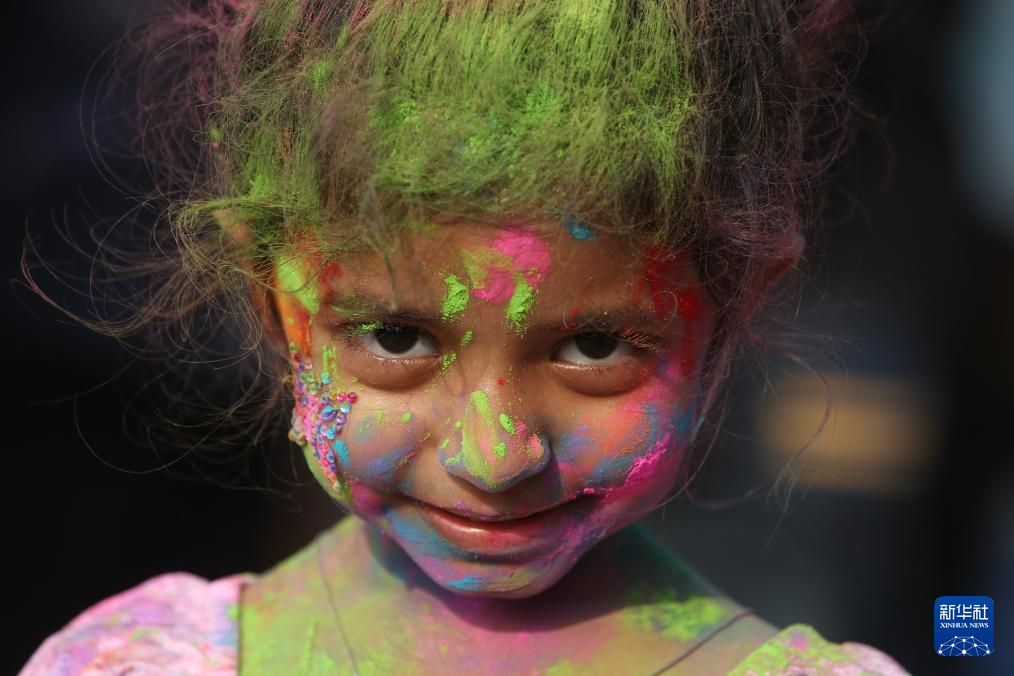 3月13日,一名儿童在泰国芭堤雅参加洒红节庆祝活动。