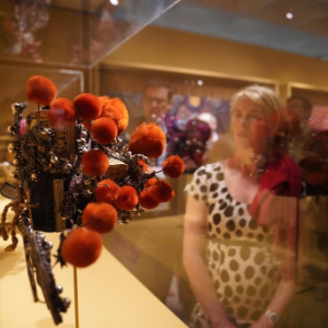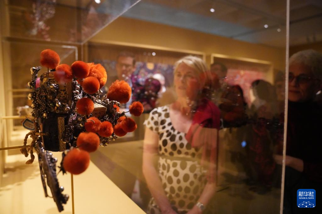 3月11日,人们在美国纽约华美协进社中国美术馆参观“飞翼歌舞:梅兰芳访美演出”展览。