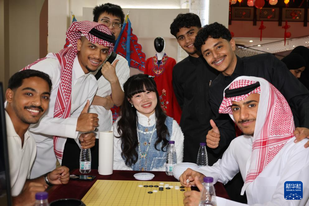 4月20日,在沙特阿拉伯吉达,当地学生在“国际中文日”庆祝活动上学习五子棋。
