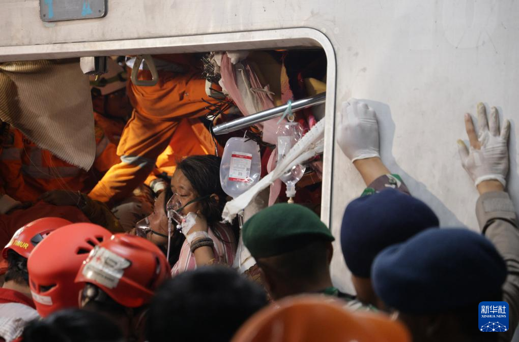 4月28日凌晨,在印度尼西亚西爪哇省勿加泗市,救援人员救助乘客。