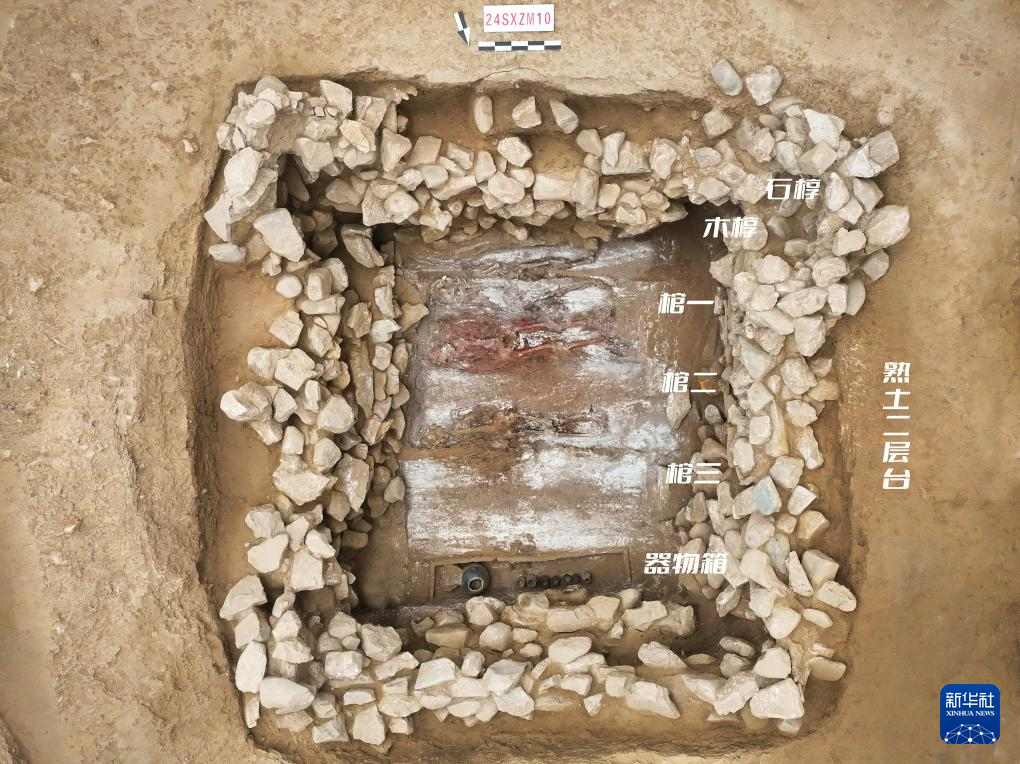 山西昔阳钟村遗址墓葬M10的棺椁结构(资料照片)。