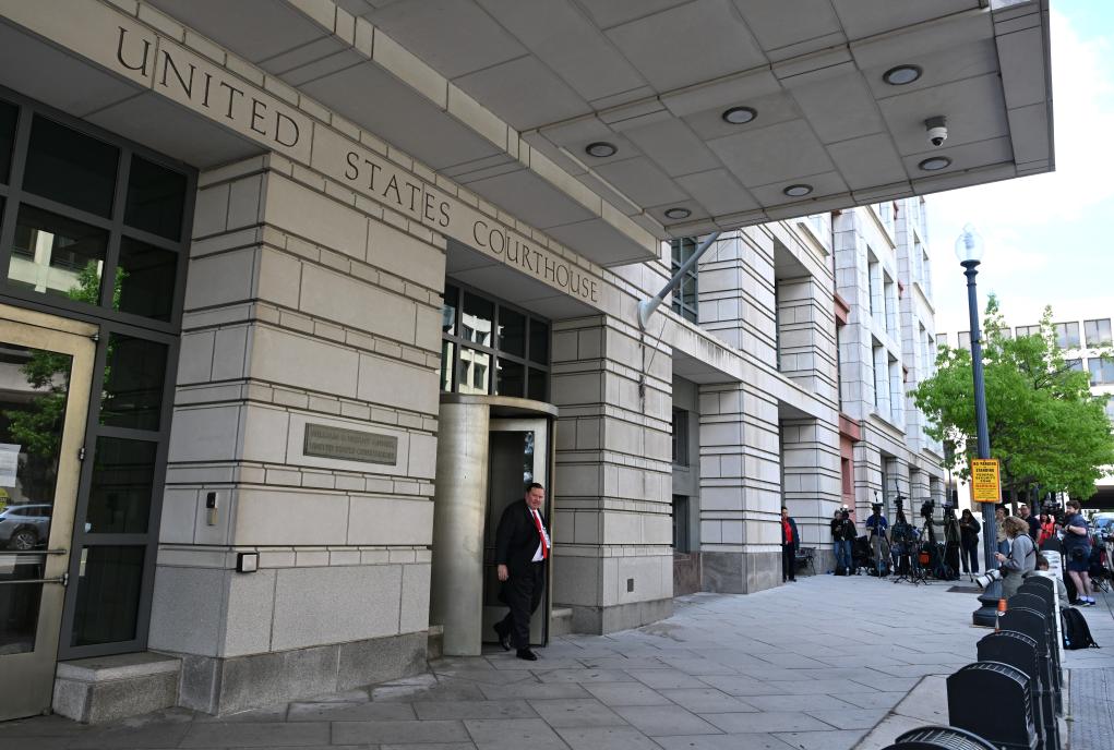 4月27日,在美国首都华盛顿,媒体记者在美国哥伦比亚特区联邦地区法院附近守候。