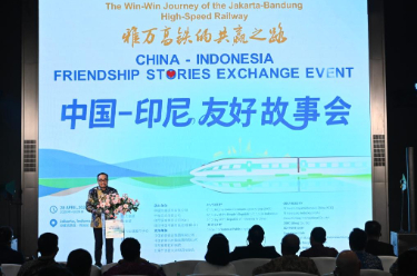 4月28日,在印度尼西亚雅加达,印尼中国高速铁路有限公司董事长德维亚纳在活动中致辞。