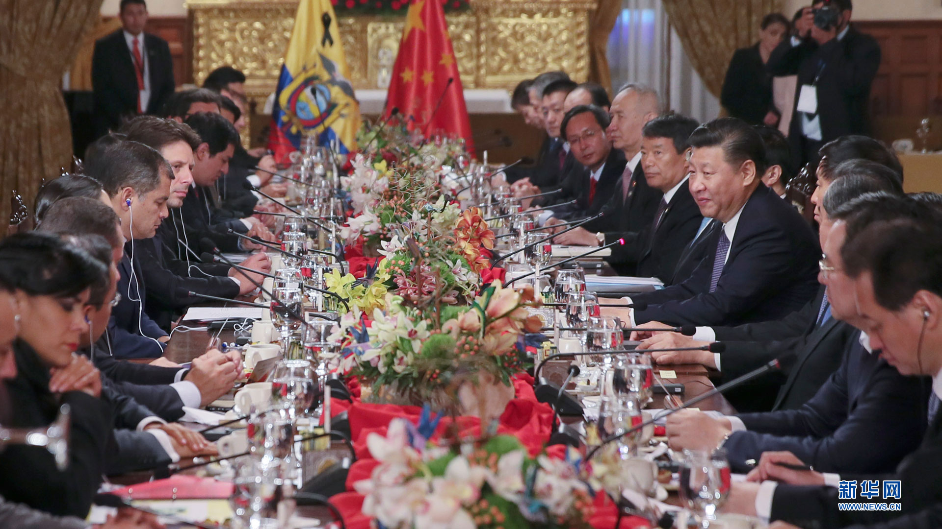 當地時間11月17日,國家主席習近平在基多同厄瓜多爾總統(tǒng)科雷亞舉行會談。 新華社記者 鞠鵬 攝2016-11-18