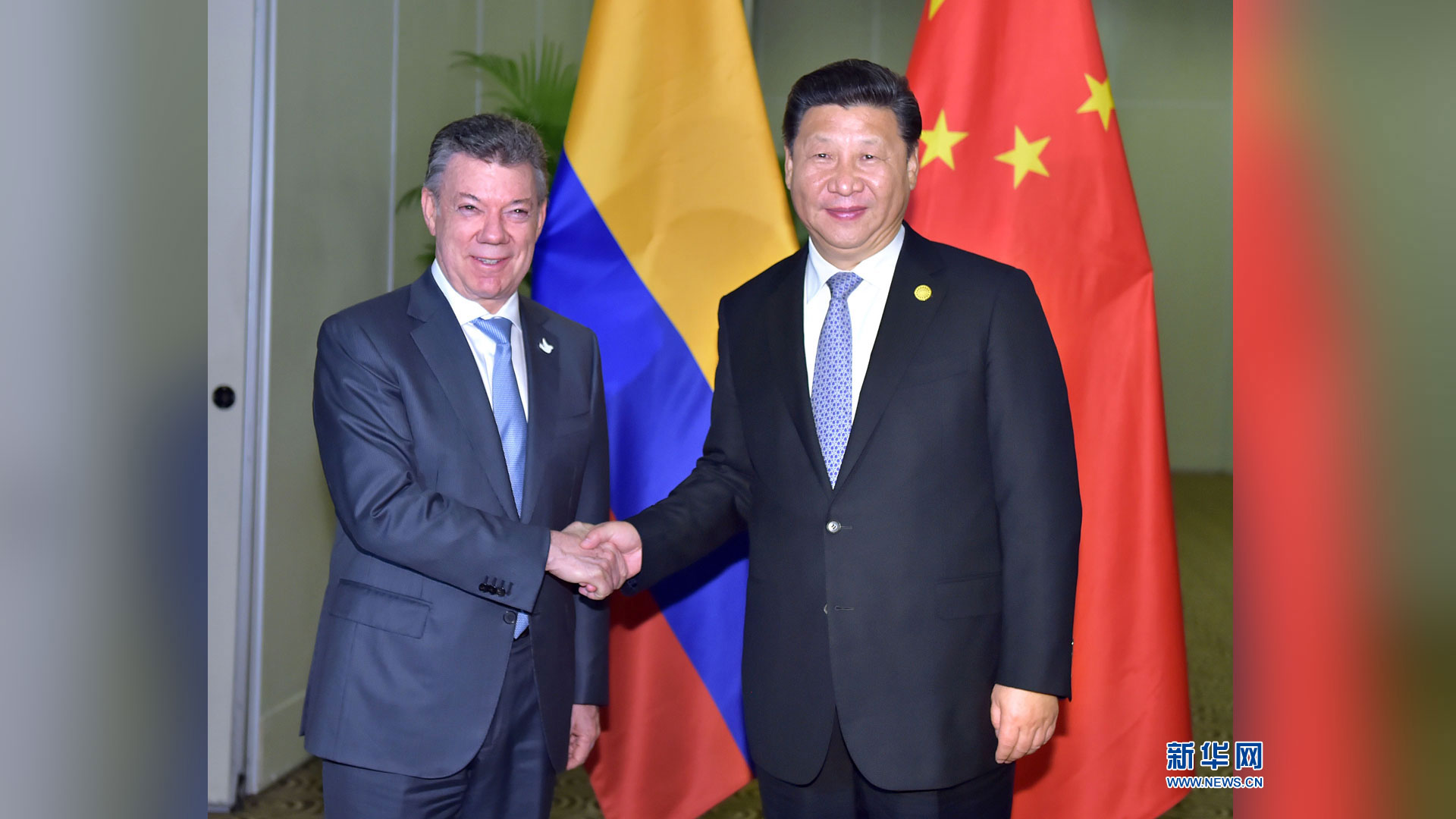 11月19日,國家主席習近平在利馬會見哥倫比亞總統(tǒng)桑托斯。新華社記者 龐興雷 攝2016-11-20