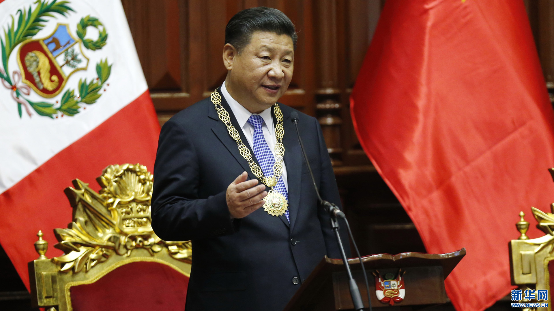 11月21日,國家主席習近平在秘魯國會發(fā)表題為《同舟共濟、揚帆遠航,共創(chuàng)中拉關系美好未來》的重要演講。 新華社記者 鞠鵬 攝2016-11-22
