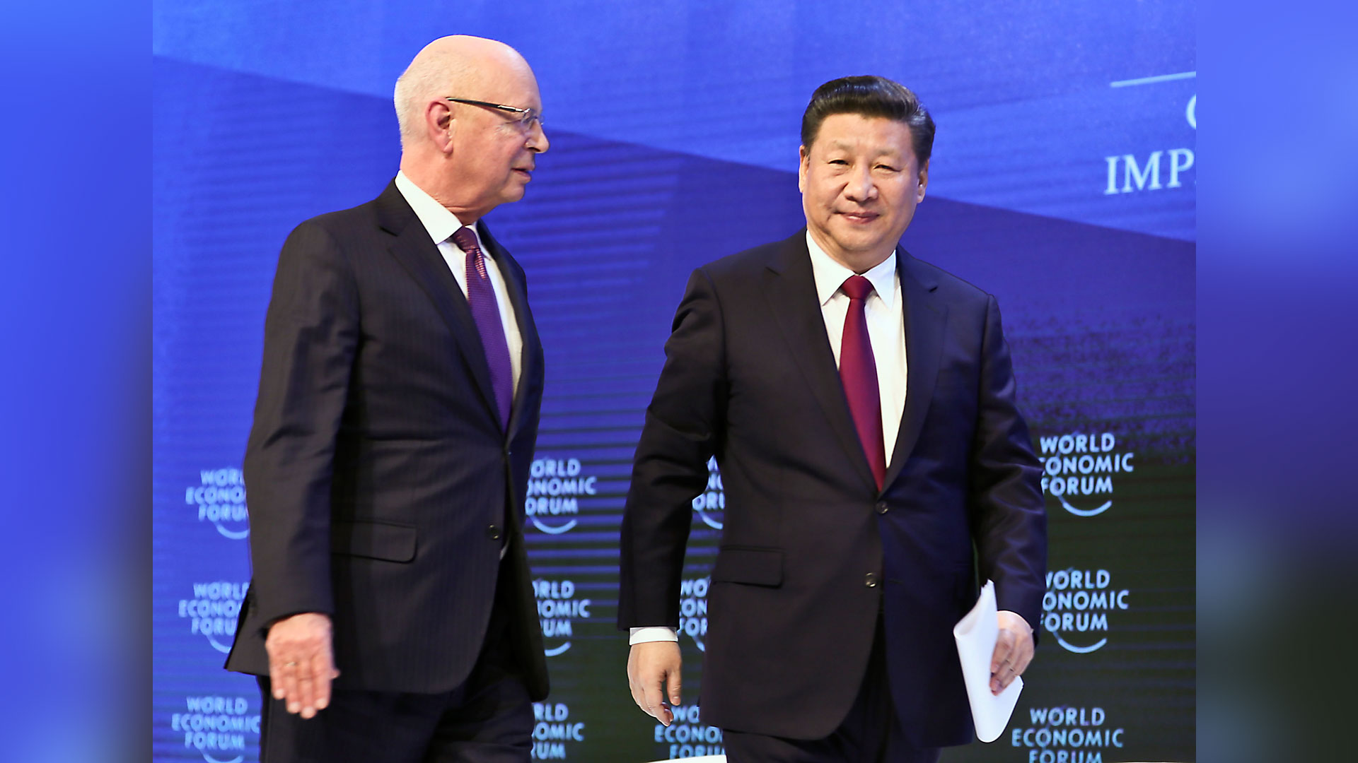 1月17日,國(guó)家主席習(xí)近平在瑞士達(dá)沃斯國(guó)際會(huì)議中心出席世界經(jīng)濟(jì)論壇2017年年會(huì)開幕式,并發(fā)表題為《共擔(dān)時(shí)代責(zé)任共促全球發(fā)展》的主旨演講。這是習(xí)近平同世界經(jīng)濟(jì)論壇創(chuàng)始人兼執(zhí)行主席施瓦布在一起。 新華社記者 蘭紅光 攝2017-01-18