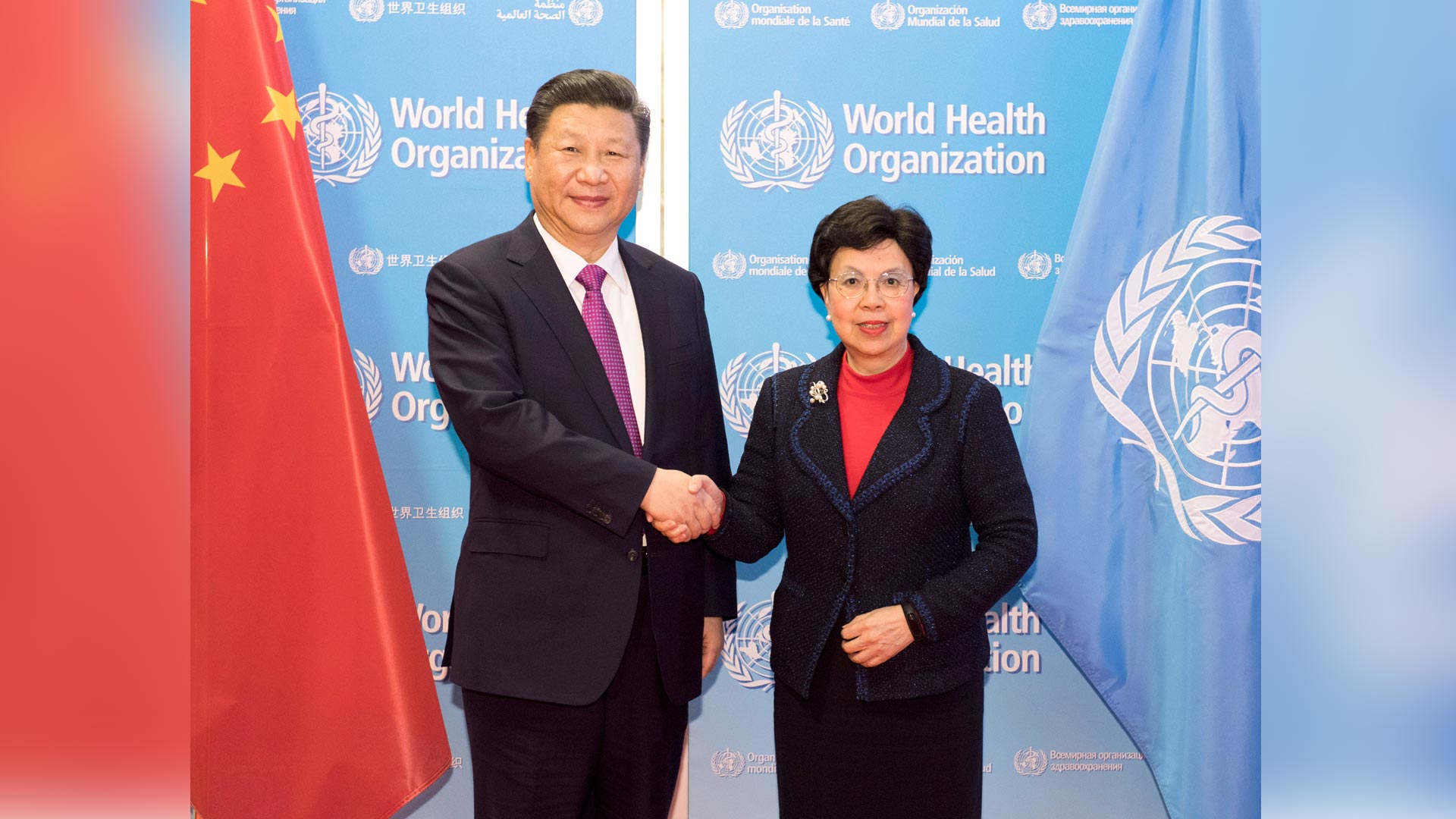 1月18日,國(guó)家主席習(xí)近平在瑞士日內(nèi)瓦訪問世界衛(wèi)生組織并會(huì)見陳馮富珍總干事。 新華社記者 吳曉凌 攝2017-01-19