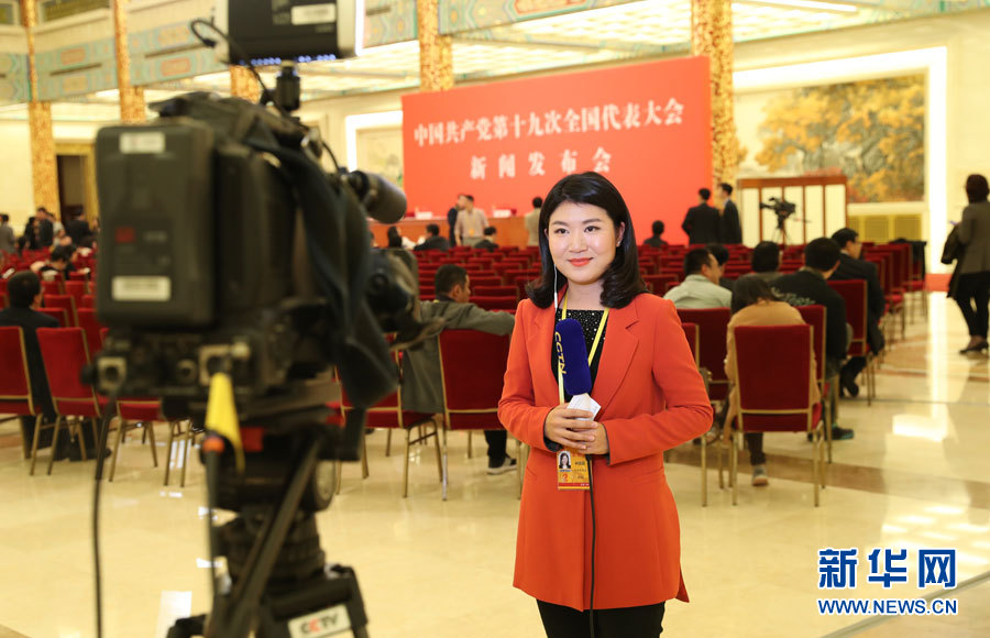 2017年10月17日下午,中國共產(chǎn)黨第十九次全國代表大會(huì)新聞發(fā)言人在人民大會(huì)堂三樓金色大廳舉行新聞發(fā)布會(huì),并回答中外記者的提問。圖為記者在新聞發(fā)布會(huì)現(xiàn)場做準(zhǔn)備。新華網(wǎng) 翟子赫 攝