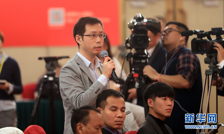 10月19日,十九大新聞中心舉行記者會,邀請中紀(jì)委、中組部負(fù)責(zé)人介紹黨的建設(shè)和全面從嚴(yán)治黨相關(guān)情況。圖為中國日報、中國日報網(wǎng)記者提問。新華網(wǎng) 郝廣鵬攝