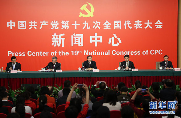10月20日,十九大新聞中心舉行記者會,邀請中宣部、中央文明辦、文化部、新聞出版廣電總局相關(guān)負(fù)責(zé)人介紹加強(qiáng)思想道德和文化建設(shè)情況,并回答記者提問。圖為記者會現(xiàn)場。新華網(wǎng) 郝廣鵬 攝