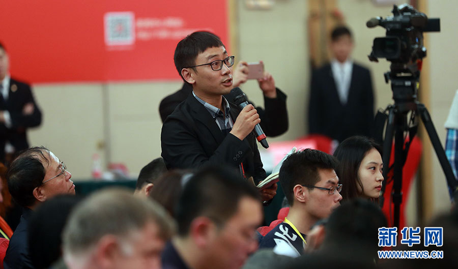 ??? 10月20日,十九大新聞中心舉辦集體采訪(fǎng)活動(dòng),主題為“文化發(fā)展開(kāi)創(chuàng)新局面”。圖為光明日?qǐng)?bào)融媒體記者提問(wèn)。新華網(wǎng) 翟子赫攝