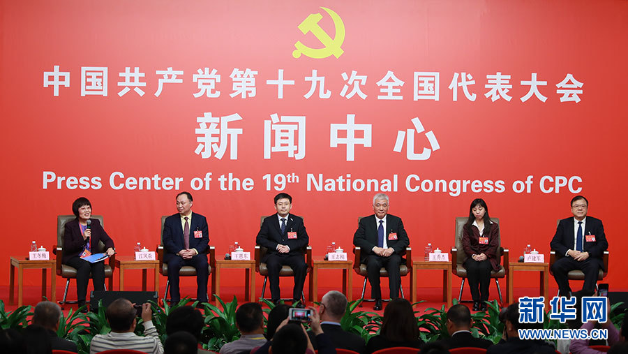 10月20日,十九大新聞中心舉辦集體采訪活動,主題為“實施創(chuàng)新驅動發(fā)展戰(zhàn)略”。圖為集體采訪現(xiàn)場。新華網(wǎng) 郝廣鵬攝