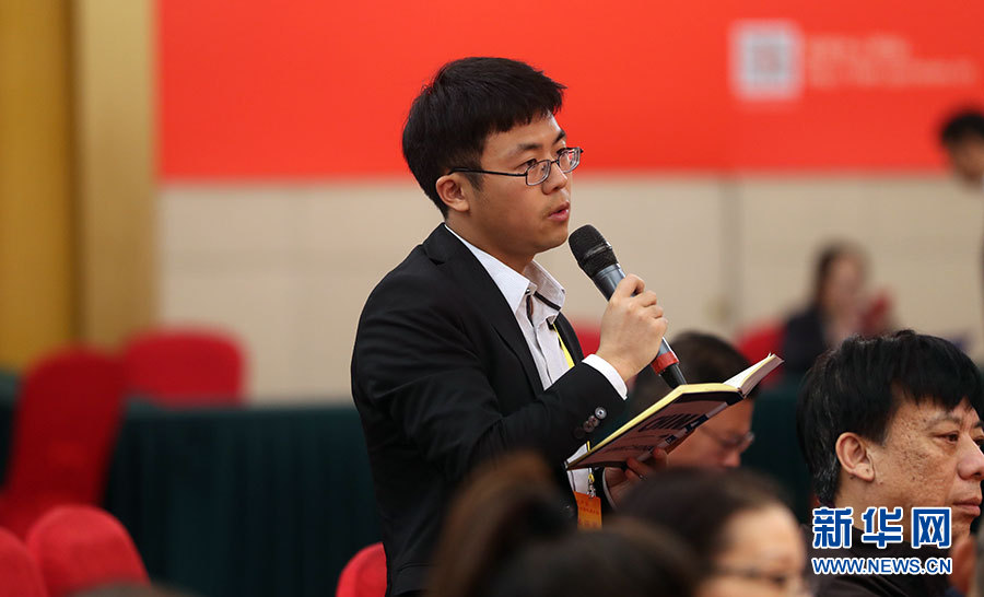 10月21日,十九大新聞中心舉辦集體采訪活動(dòng),主題為“農(nóng)業(yè)科技創(chuàng)新”。圖為中國日?qǐng)?bào)記者提問。新華網(wǎng) 郝廣鵬攝