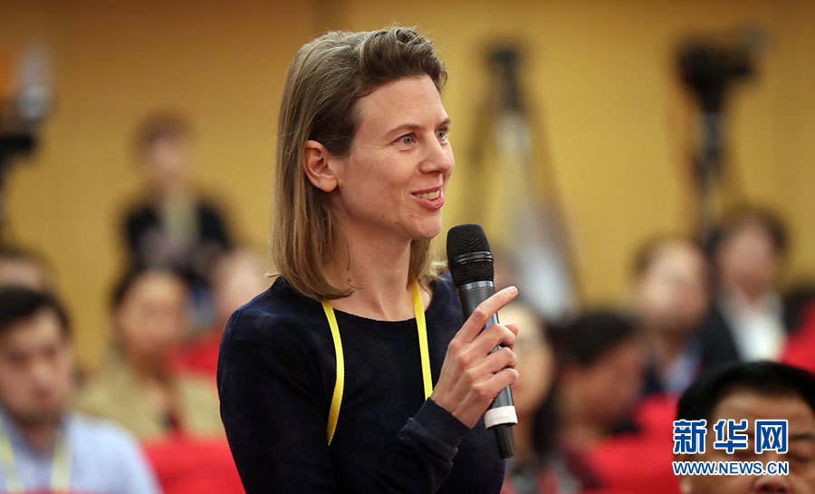 10月21日,十九大新聞中心舉辦集體采訪活動,主題為“農(nóng)業(yè)科技創(chuàng)新”。圖為路透社記者提問。新華網(wǎng) 郝廣鵬攝