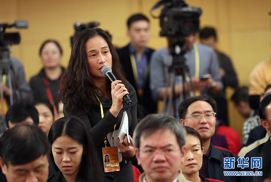 10月23日,十九大新聞中心舉辦記者招待會,邀請中央財經(jīng)領(lǐng)導(dǎo)小組辦公室副主任楊偉民,環(huán)境保護部黨組書記、部長李干杰介紹踐行綠色發(fā)展理念,建設(shè)美麗中國有關(guān)情況,并回答記者提問。圖為華爾街日報記者提問。新華網(wǎng) 郝廣鵬攝